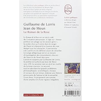 Collection dirigée par Michel ZinkLa collection Lettres gothiques se propose d?ouvrir au public le plus large un accès à la fois direct, aisé et sûr, à la littérature du Moyen Age : un accès direct en mettant sous les yeux du lecteur le texte original ; un accès aisé grâce à la traduction en français moderne proposée en regard, à l?introduction et à des notes nombreuses ; un accès sûr grâce au soin dont font l?objet la présentation du texte et son commentaire.La collection Lettres gothiques offre ainsi un panorama représentatif de l?ensemble de la littérature médiévale.Guillaume de Lorris et Jean de Meun LE ROMAN DE LA ROSELe Roman de la Rose est un récit codé de l?initiation amoureuse. A l?âge où « Amour prélève son péage sur les jeunes gens », le poète rêve qu?il entre dans le verger de Plaisir et s?éprend d?un bouton de rose. Malgré tous les obstacles, il parviendra à le cueillir et à le déflorer avant de s?éveiller. Le songe allégorique est ici un moyen d?investigation des mouvements obscurs de l?âme et de l?éveil des sens.Laissé en suspens par Guillaume de Lorris, le poème est achevé par Jean de Meun vers 1270. Le premier met en récit les motifs du lyrisme courtois. Le second, tout en abordant les grands problèmes philosophiques, scientifiques, moraux et sociaux de son temps, élabore une théorie provocante de l?amour et de la sexualité. A eux deux, ils proposent une somme poétique, amoureuse et intellectuelle d?une ampleur et d?une vigueur inégalées.La présente édition et la traduction qui l?accompagne sont entièrement nouvelles. Pour la première fois, le lecteur dispose en un seul volume du texte intégral du Roman de la Rose et de sa traduction en français moderne.